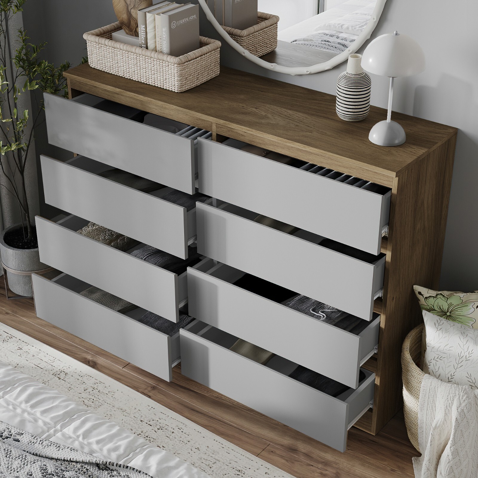 Wide Wooden Chest of 8 Drawers Bedroom Furniture Storage Bedside Modern Cabinet