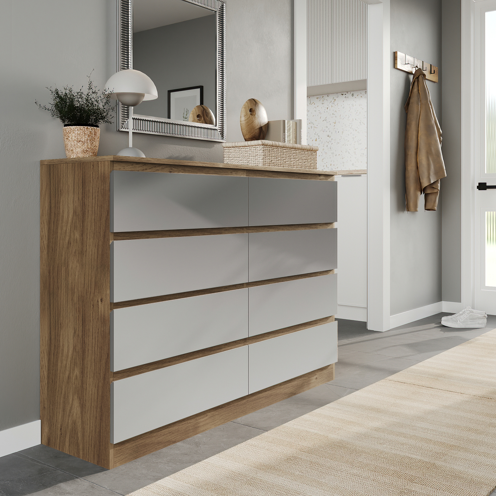 Two columns of four drawers for ample storage. What truly sets the Skagen chest apart is the ability to mix and match the carcass and drawer colours. This exciting feature opens up a world of creative possibilities, allowing you to create a truly unique piece that reflects your personal taste.