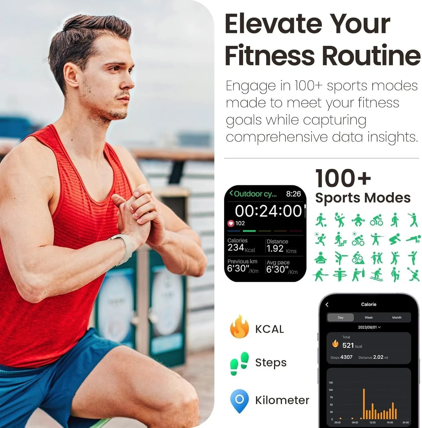 AMOLED Display, Blood Oxygen Sensor, Bluetooth Enabled, Fitness Tracker, Heart Rate Monitor, Sleep Monitor, Touchscreen, Waterproof